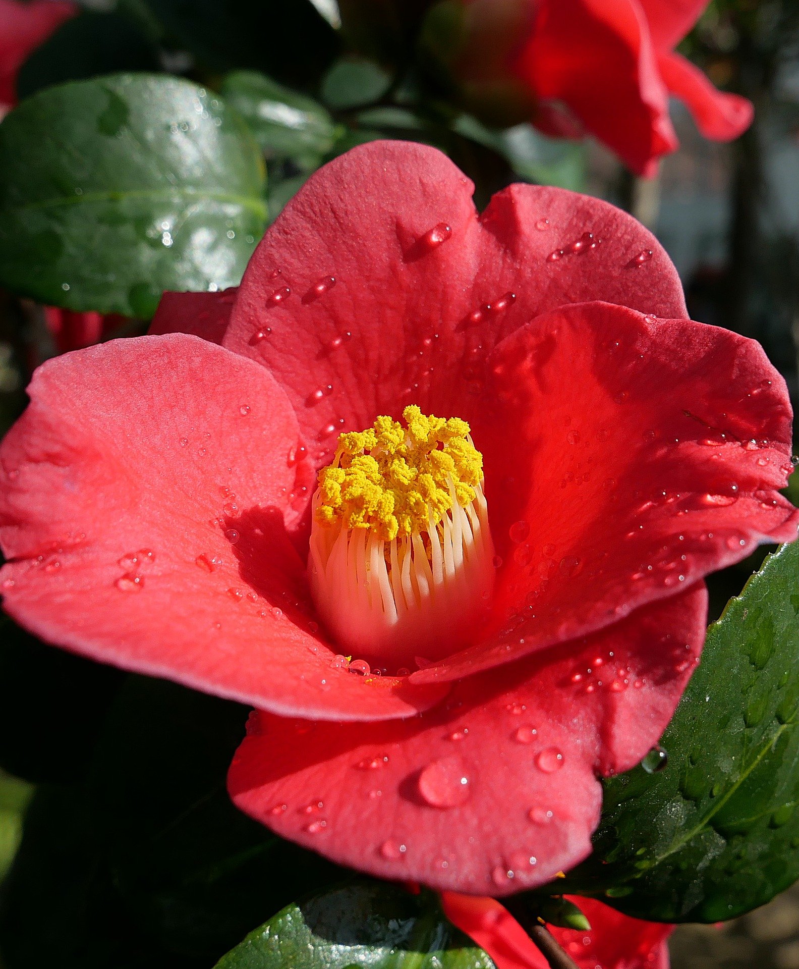 확립된 식물(3년 이상, 튼튼하고 뿌리가 차고 있음)은 약간의 보충 물만 있으면 잘 자랍니다. 물을 줄 경우 흙이 잘 빠지도록 한다. 강한 바람, 특히 남부 북부나 해안 근처에서 그들을 보호하십시오. 쪽 동백나무 그들은 염수 분무를 용납하지 않으므로 해안 기후는 동백 재배에 이상적이지 않습니다.