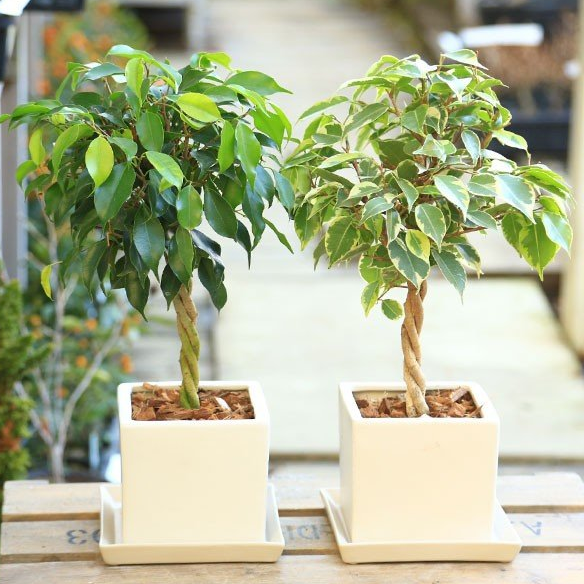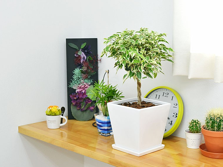 원종은 광택 있는 달걀형의 잎이 특징입니다만, 흰 반이 들어간 종류나 잎이 둥글고 있는 종류 등 많은 종류가 유통하고 있습니다 벤자민은 나무의 줄기가 부드러운 것도 특징입니다 비틀어진 형상이나 3개 뜨개질로 하거나 자유롭게 형상을 바꿀 수 있는 인테리어로서 인기입니다 벤자민의 종류 일람